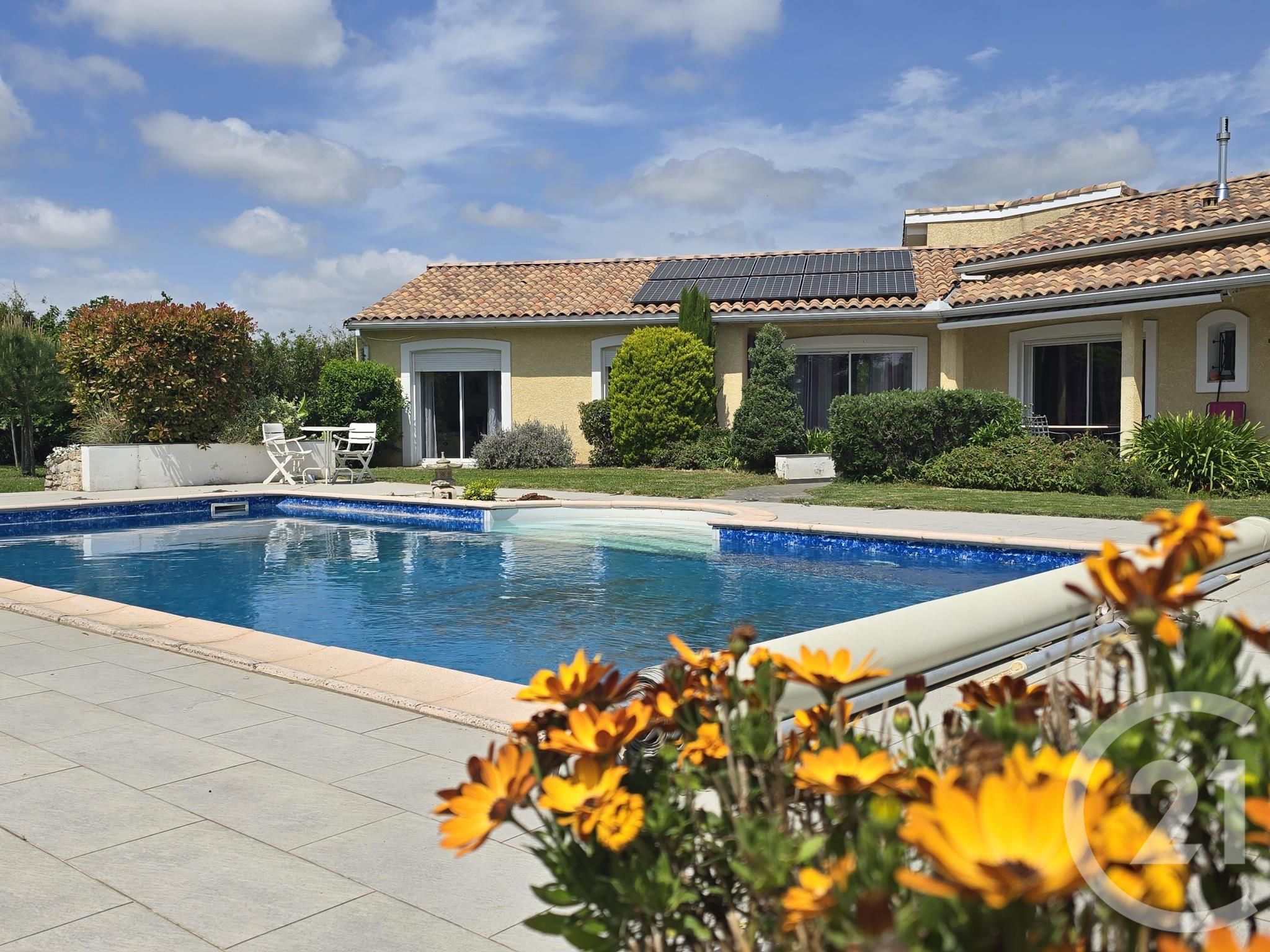 A l'extérieur, l'espace piscine vous invite à des moments de détente en plein air avec une terrasse d'été intime et un pool house, nichés dans un jardin paysagé et arboré de 2160m²,