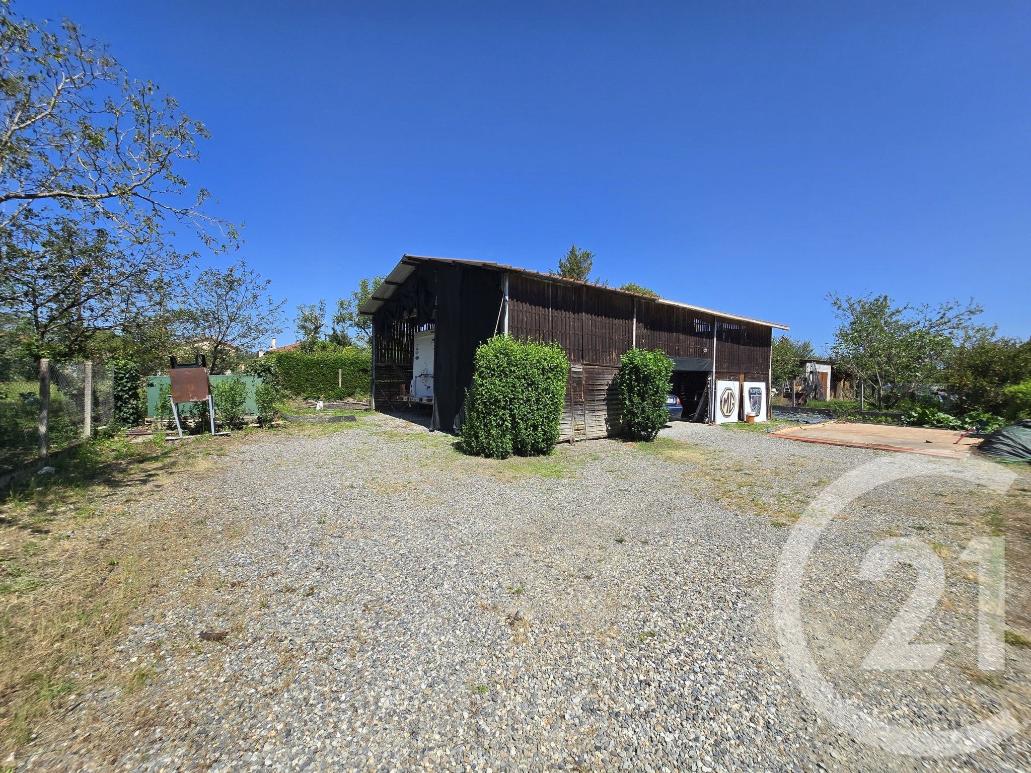 Grand hangar de 96 mètres carrés sur un terrain constructible de 979 mètres carrés.