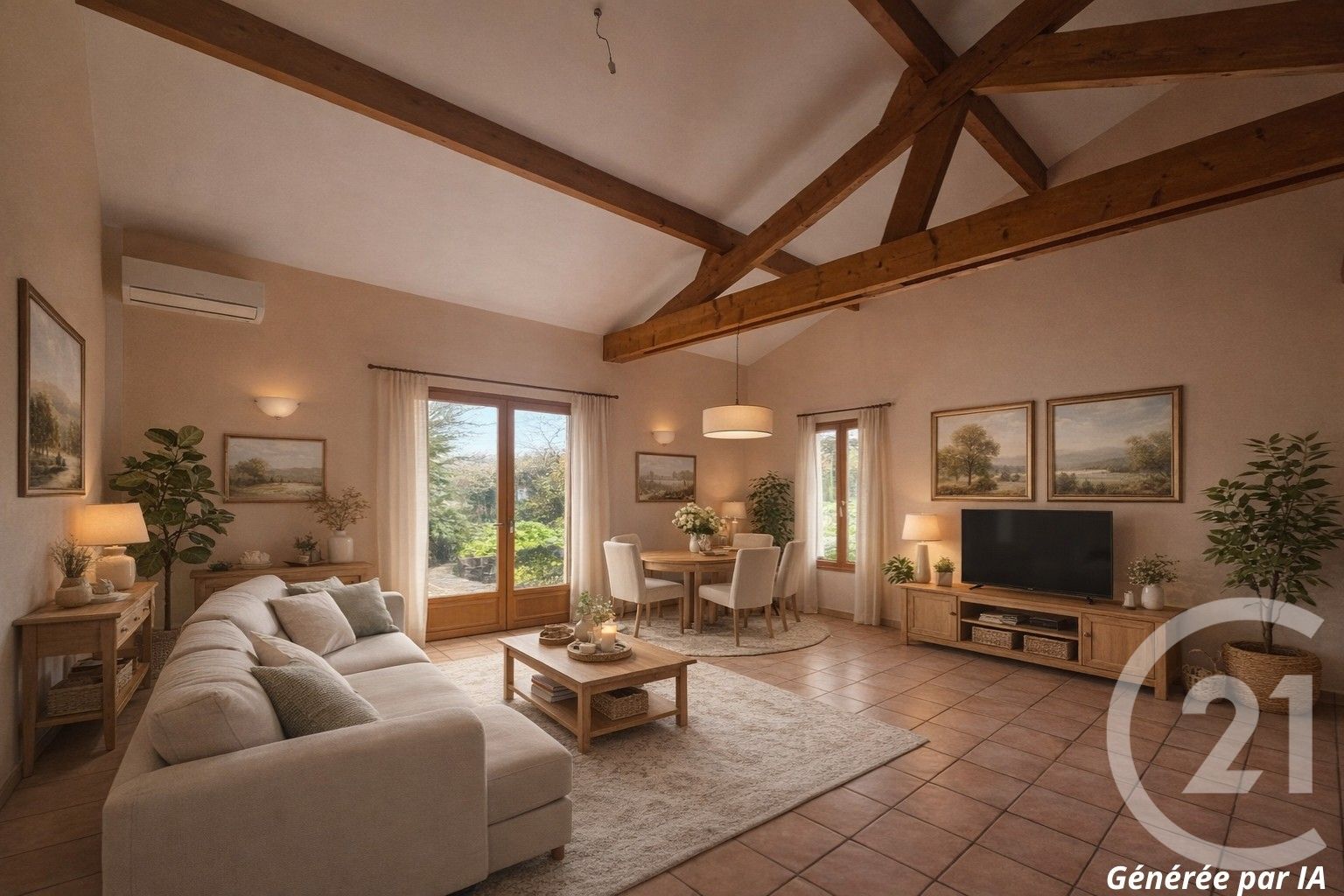 - Air conditionné, double vitrage, mezzanine, placards, poutres